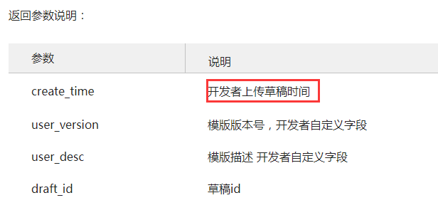 第三方平台 获取草稿箱内的所有临时代码草稿 接口的create_time时间不是草稿的创建时间