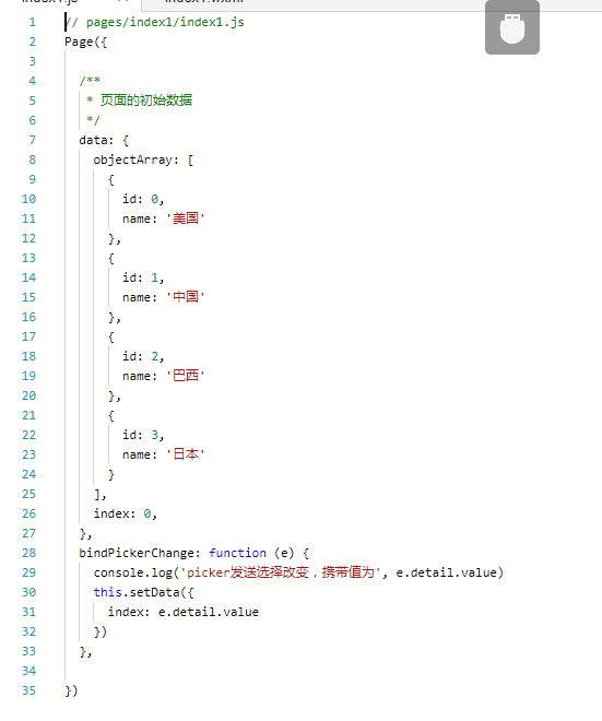 新版开发工具 里关于 picker 使用 object array 时,滚动选择不到第一个(index)为0 的下标上是数组!!