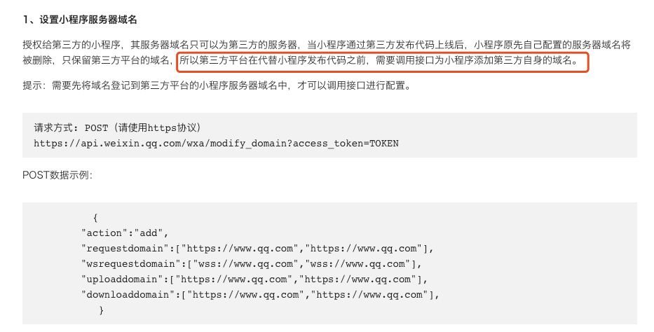 如果使用了第三方平台开发的话,合法域名需要调用微信的api来进行设置,在微信开发者后台设置合法域名是没有用的![]()