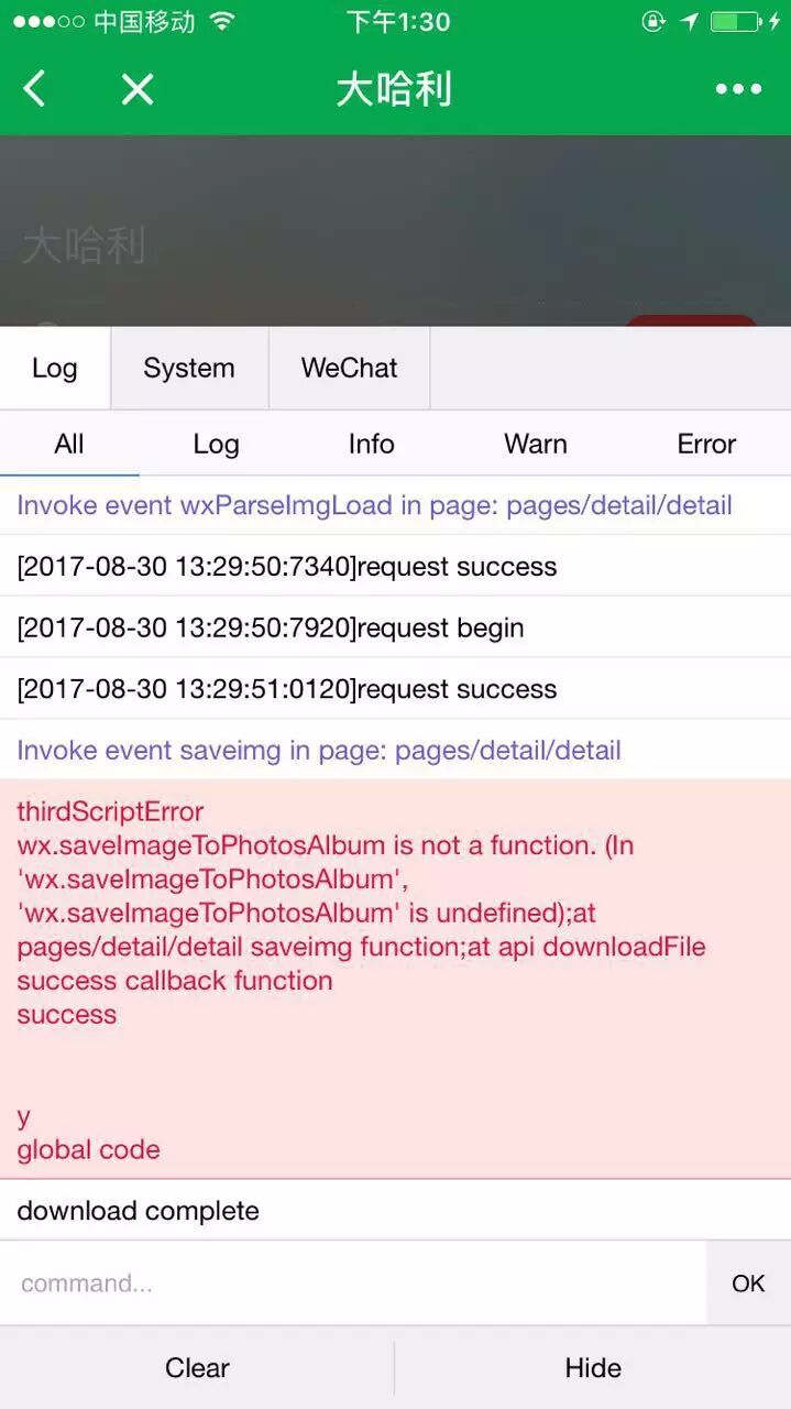 在开发工具上测试没有任何问题,但是用IPHone测试,显示以下错误: