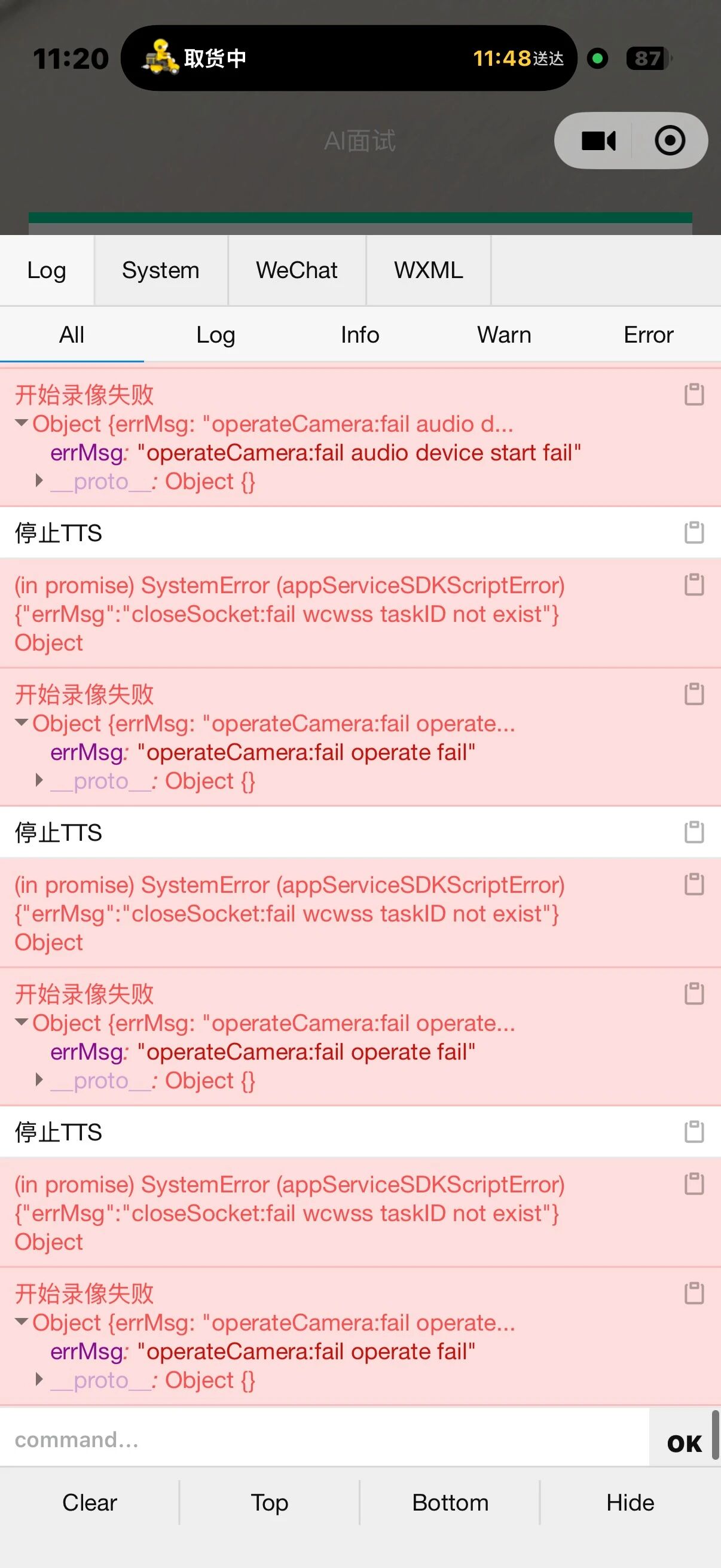CameraContext.startRecord api 调用失败 IOS 16.2 16.3报错显示 errMsg: "operateCamera:fail operate fail"
