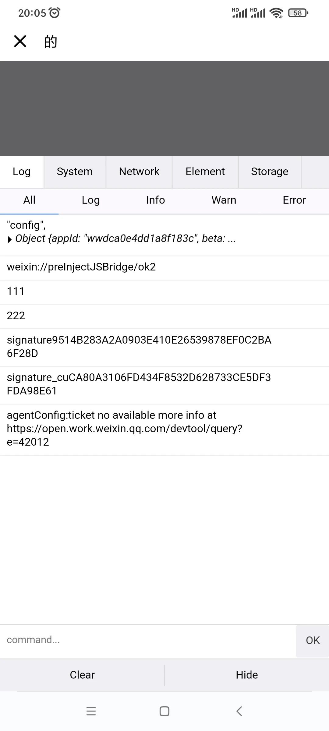 4.config ok-->checkresult:agentConfig (ok ) getCurExternalContact (ok )-->错误 42012
