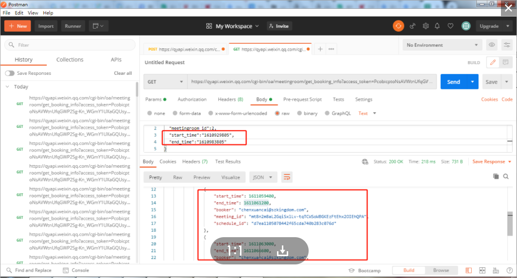 接口:https://qyapi.weixin.qq.com/cgi-bin/oa/meetingroom/get_booking_info?access_token=ACCESS_TOKEN