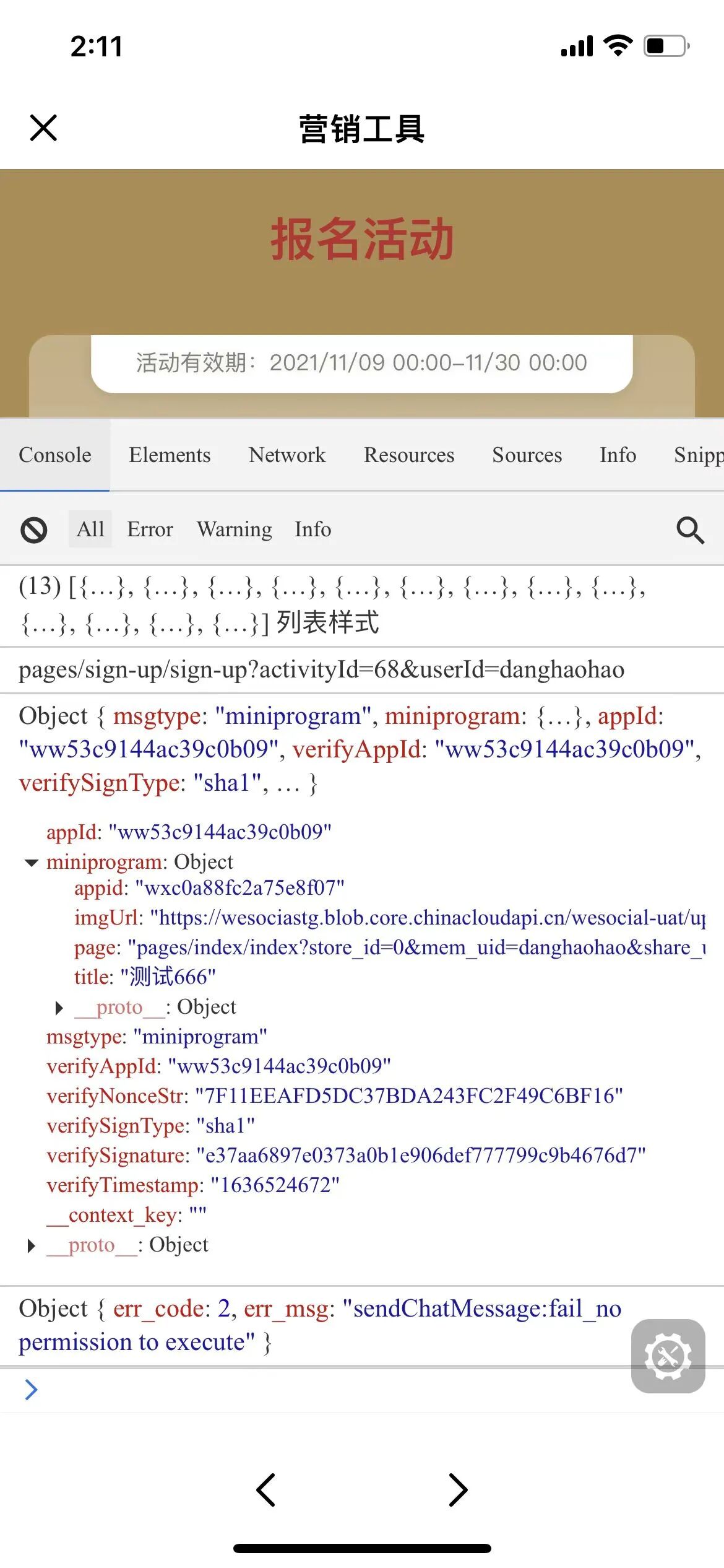 - 此时在B页面配置 agentConfig 的时候用 B 页面的 url 签名失败,sdk(wx.invoke('sendChatMessage',{ ... } )) 仍然无法使用
