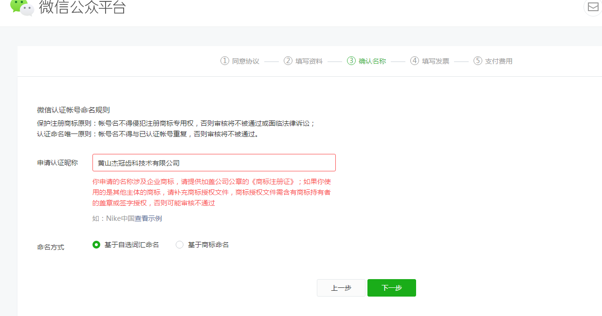 你好 公众号年审我的公众号名称没有改变,我们公司也没有注册商标,但是点下一步就提示涉及企业商标,一定要我上传商标授权文件,问题是我们根本没有注册商标,没有这个拿什么上传?我们是基于自选词汇命名的,前几年年审都正常通过的,怎么今年这么麻烦?