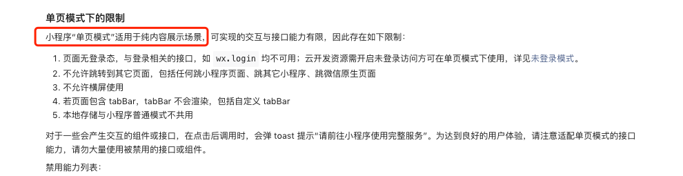 用户在朋友圈打开分享的小程序页面,并不会真正打开小程序,而是进入一个“小程序单页模式”的页面,“单页模式”有以下特点: