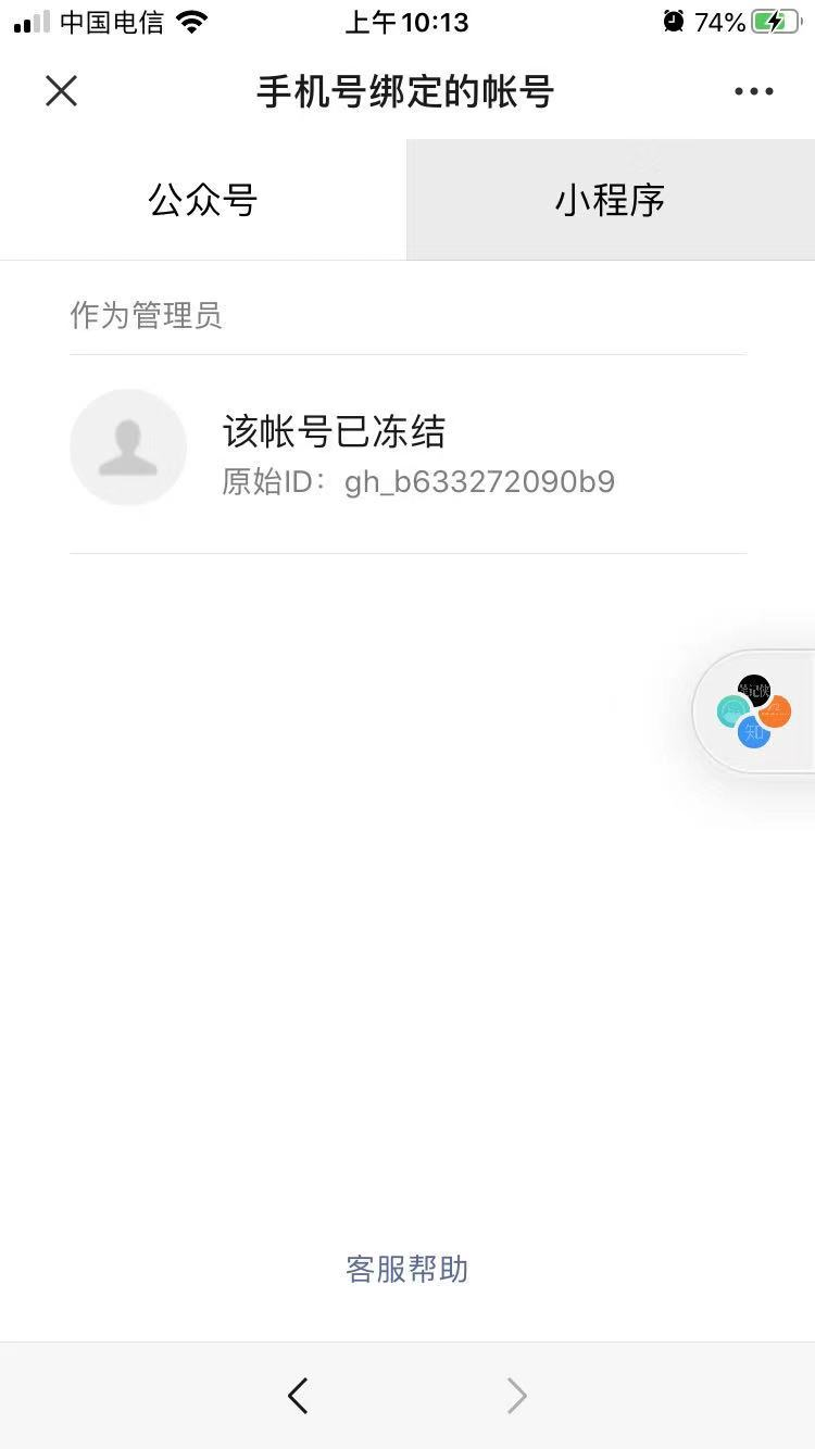 @社区技术运营专员 - 许涛,你好,我在 "公众平台安全助手" 通过我自己的身份证号查询已绑定的账号,发现有一个小程序账号,但是我不记得我有注册过小程序,然后想解冻看看,结果提示找回主体与账号主体不一致,能帮忙看下是什么问题吗