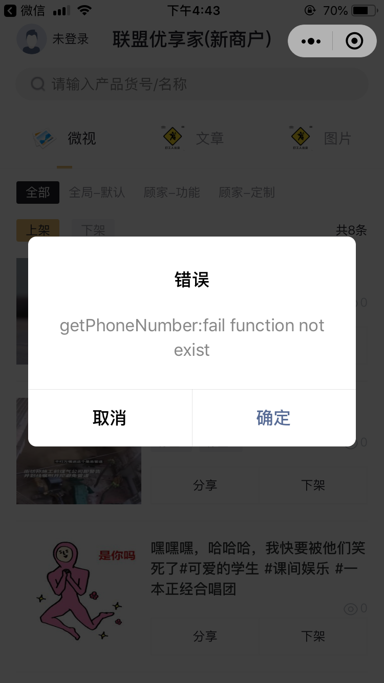 iOS 版本企业微信使用 button 组件获取手机号报错 提示说没有这个方法? errMsg: getPhoneNumber:fail function not exist