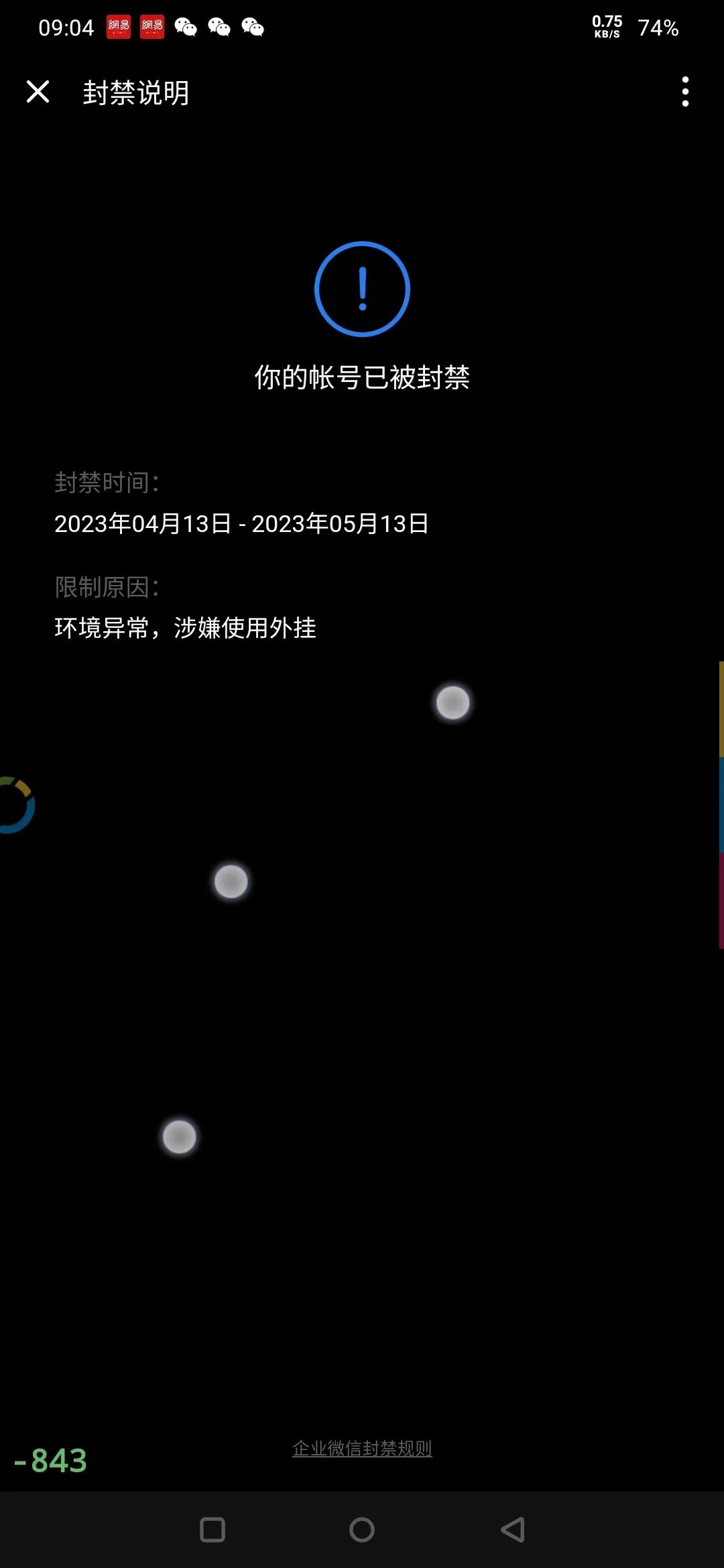 频繁封号搞得莫名其妙。一个企业微信app有什么值使用外挂的的理由?里面可以存巨款?