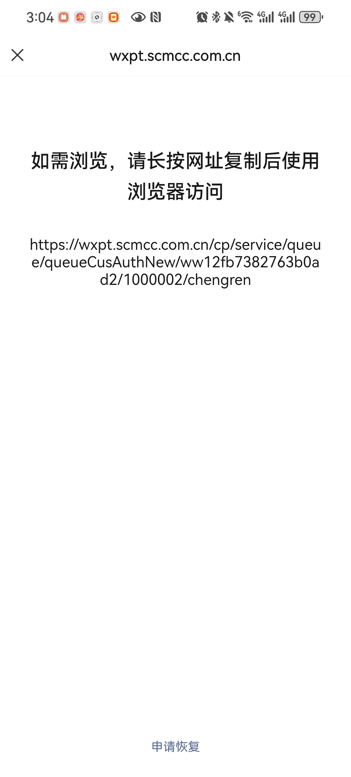 企业微信给成员配置了扩展属性为链接类型的,安卓微信用户点开,提示“如需浏览,请长按网址复制后使用浏览器访问”,但是如果将这链接放在聊天框里面却不会提示。请问是触发了什么机制吗?这只是一个移动营业厅店的排号的地址。