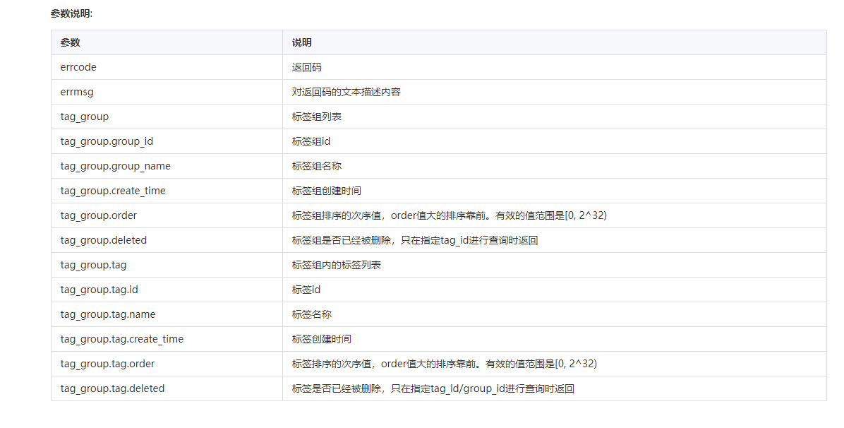 请求地址:https://qyapi.weixin.qq.com/cgi-bin/externalcontact/get_corp_tag_list?access_token=ACCESS_TOKEN