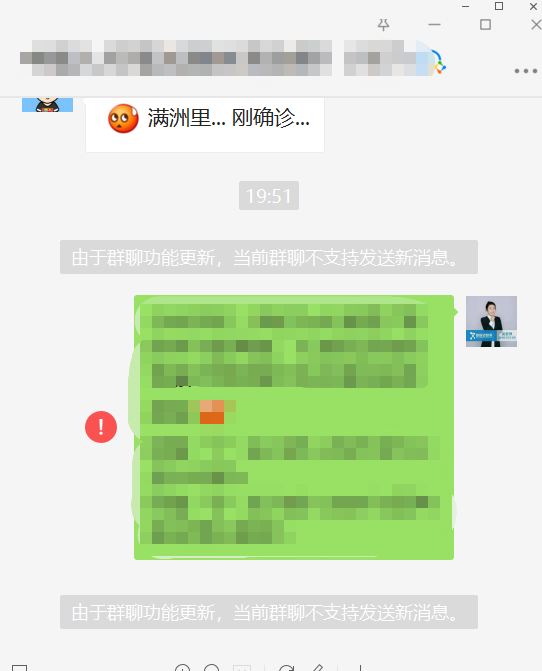 这两天开始,突然之间建立的企业微信群不能发送新消息了,提示: