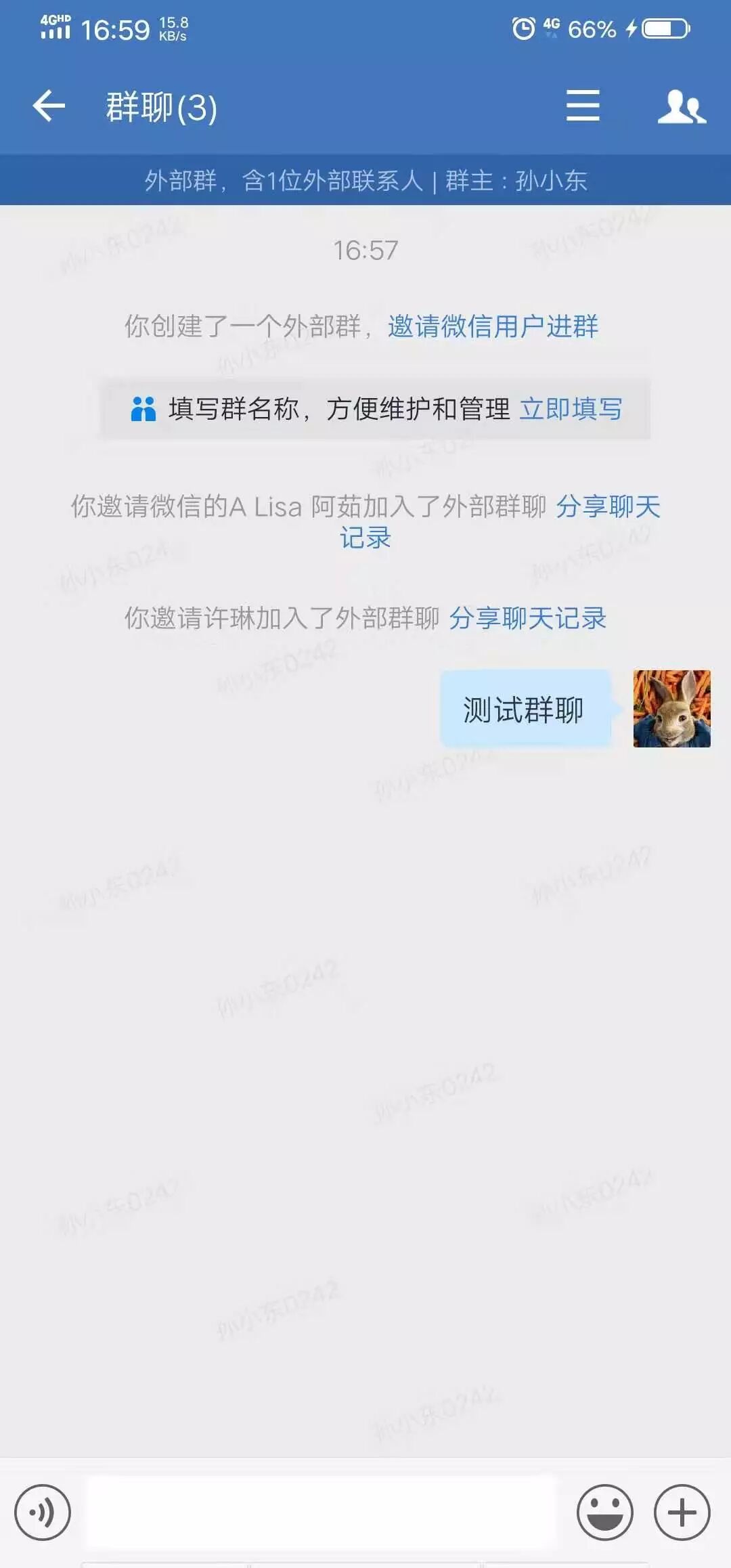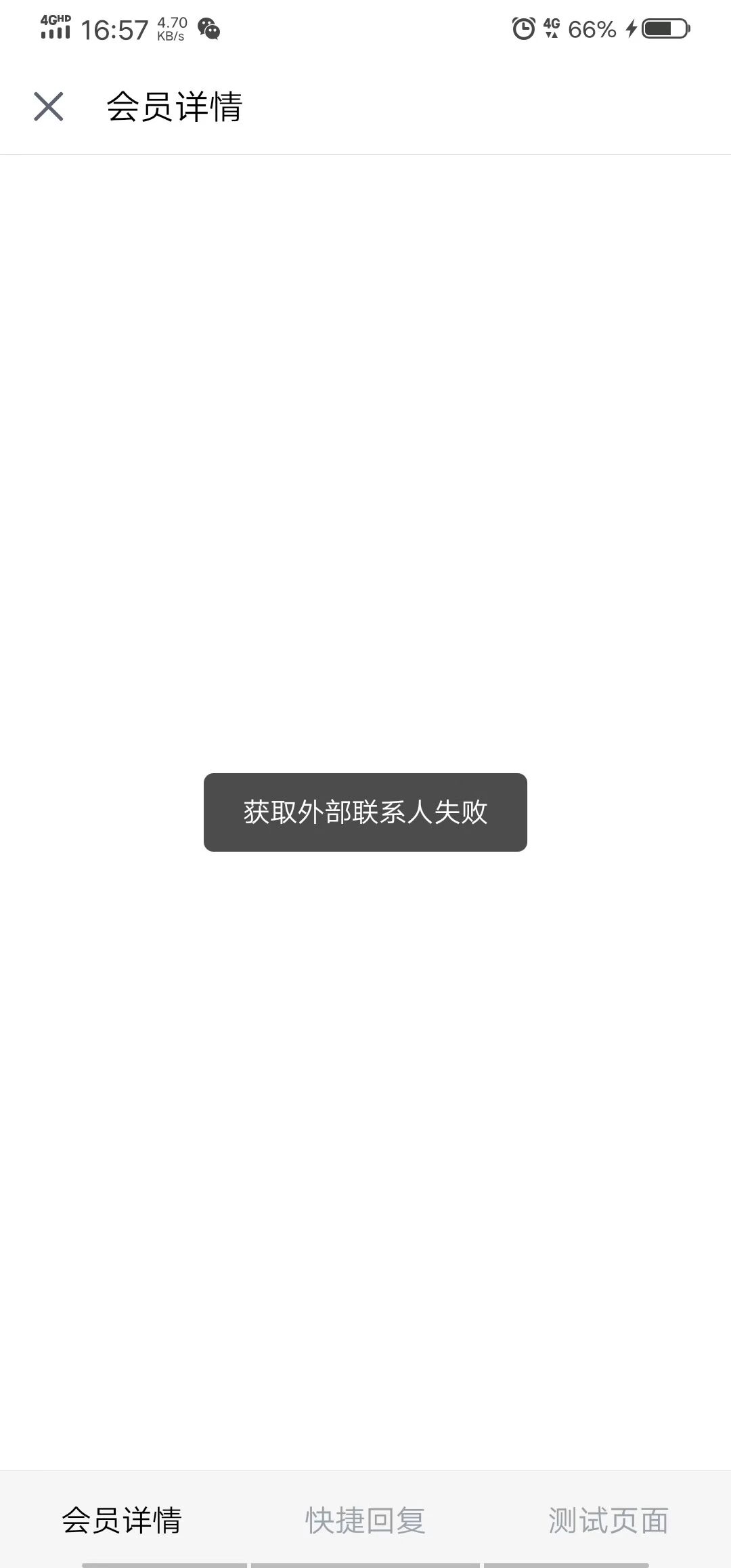 在企业微信群聊里面,打开了侧聊天栏的页面。该页面调用了获取外部联系人userid的sdk,报错获取外部联系人失败。