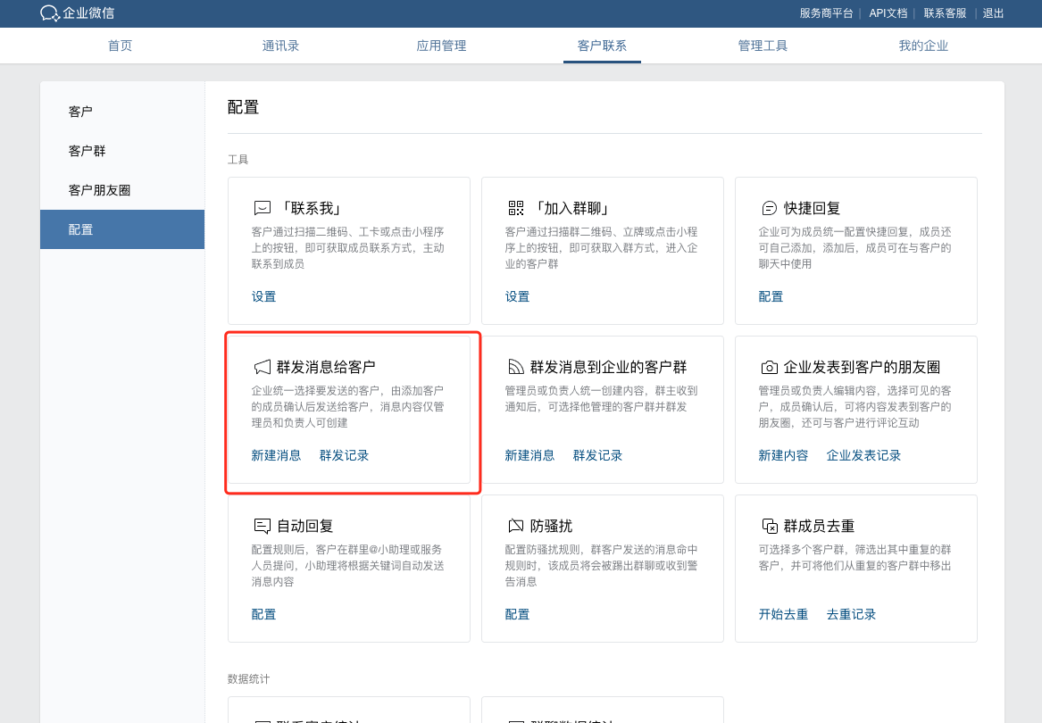 pc后台->客户联系->群发消息给客户 内的发送消息,