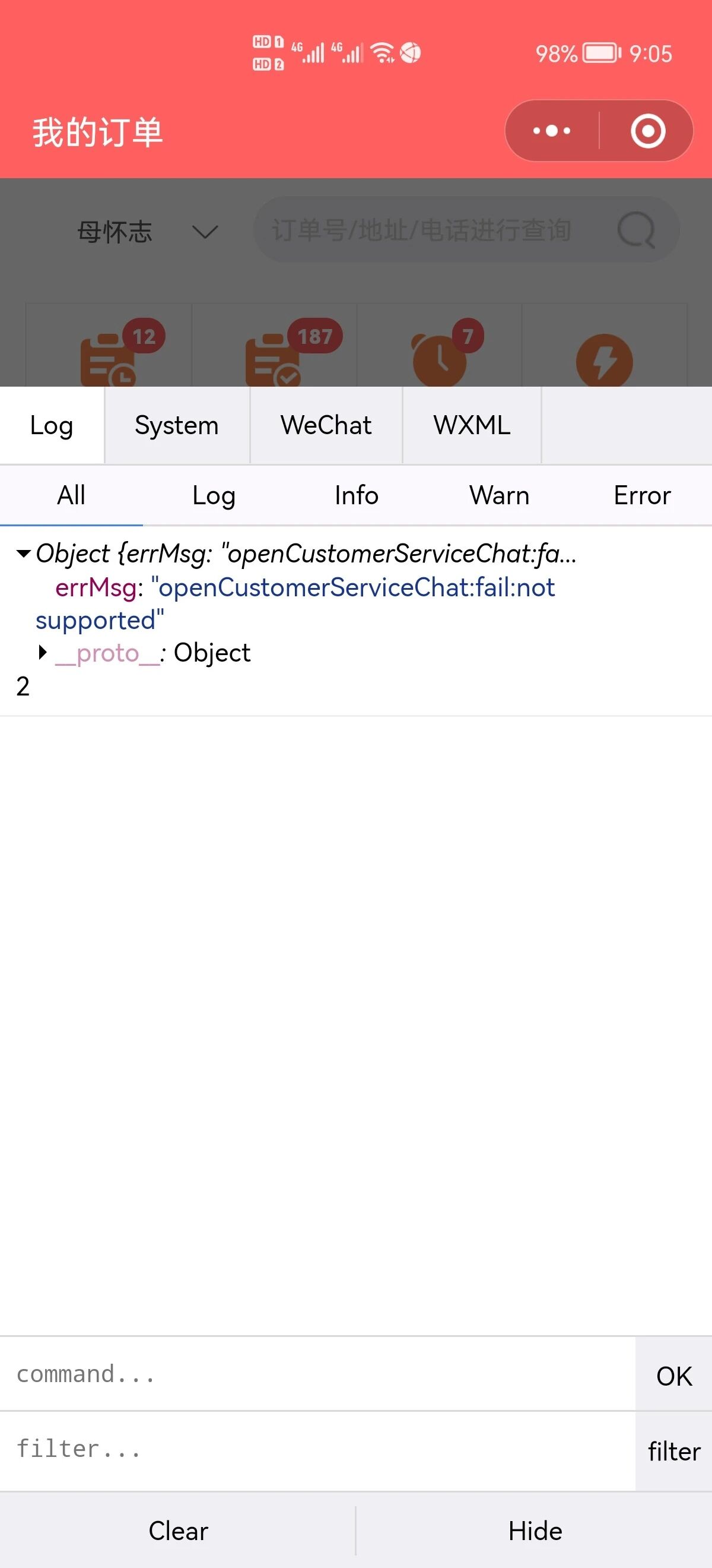 企业微信打开小程序,接入微信客服失败,提示“不支持”:openCustomerServiceChat:fail:not supported