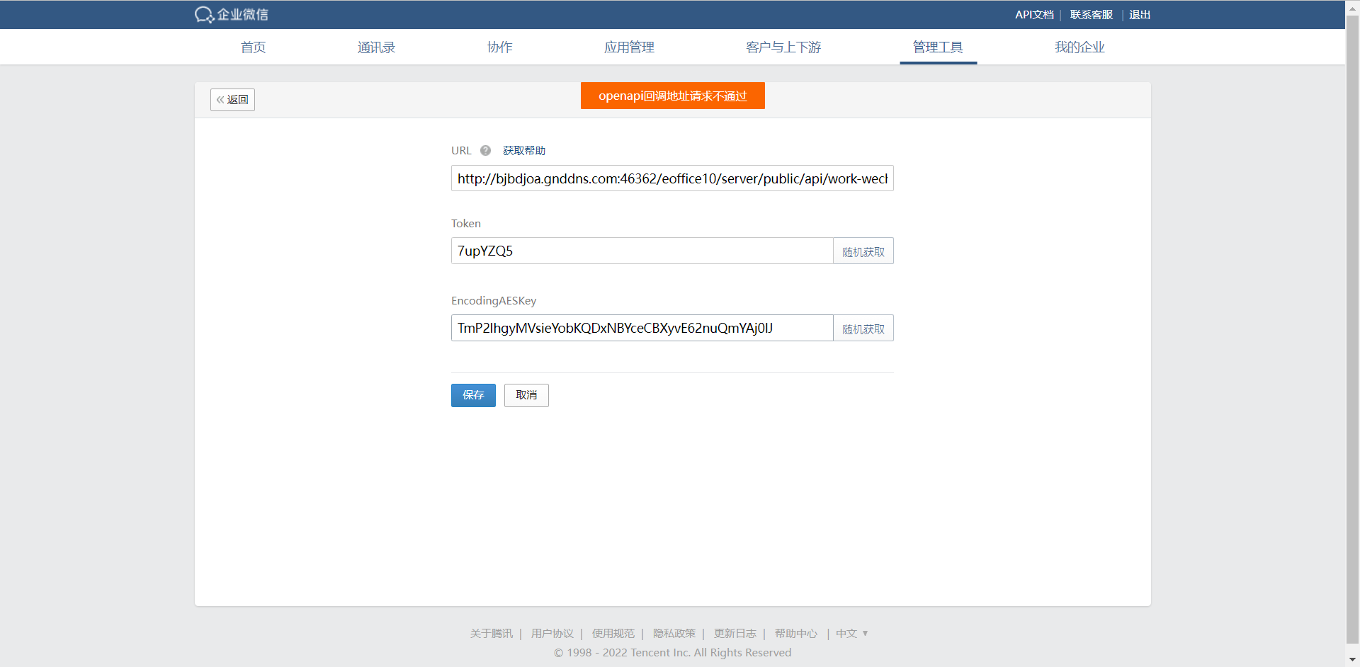 但是换到企业微信去设置则一直提示openapi回调地址请求不通过