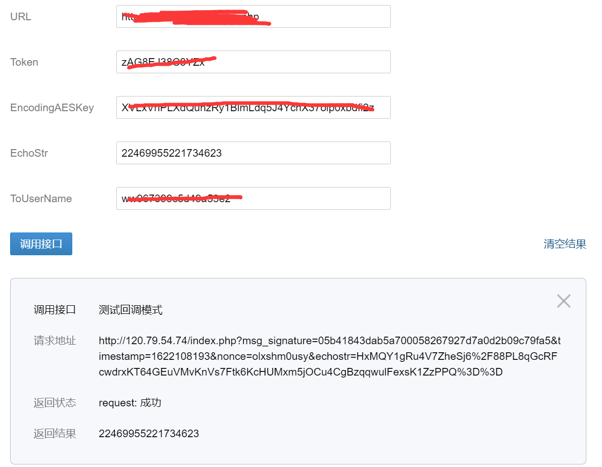 你好,这里回复的明文http://120.79.54.74/index.php?msg_signature=f53ad5c56000c4f3d5411b2669f00f4e44815ea6×tamp=1622108259&nonce=1621774855&echostr=BRS7d9XuVgJ4bsfzKn7qyAHzusW6bj6R0s02bUvBP0x3a0c1TbArTRBff7nl4O3nOwh3BP1KNd8%2Bi0BQcx7eMQ%3D%3D,所以没有通过校验,这里不能加引号,不能带bom头,不能带换行符