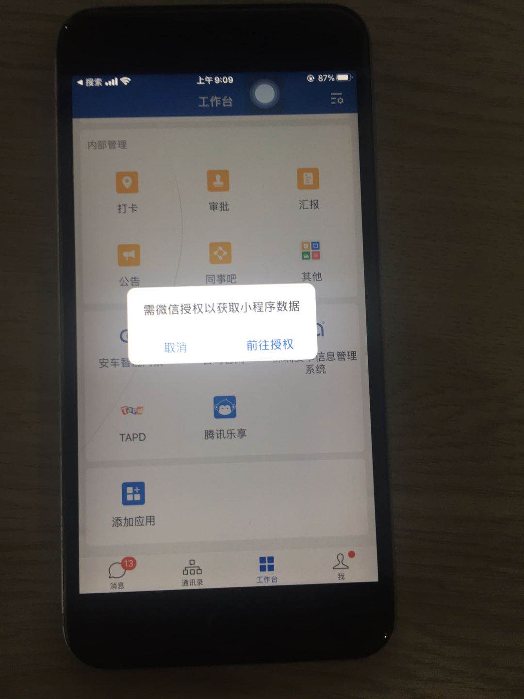 企业微信上关联的小程序,在测试阶段用安卓和苹果都没有弹出要获取授权(企业微信和个人微信都是最新版本),但上线以后公司人员好多反馈要获取个人微信的授权。以下是典型的截图。问下为什么会出现这样的情况?
