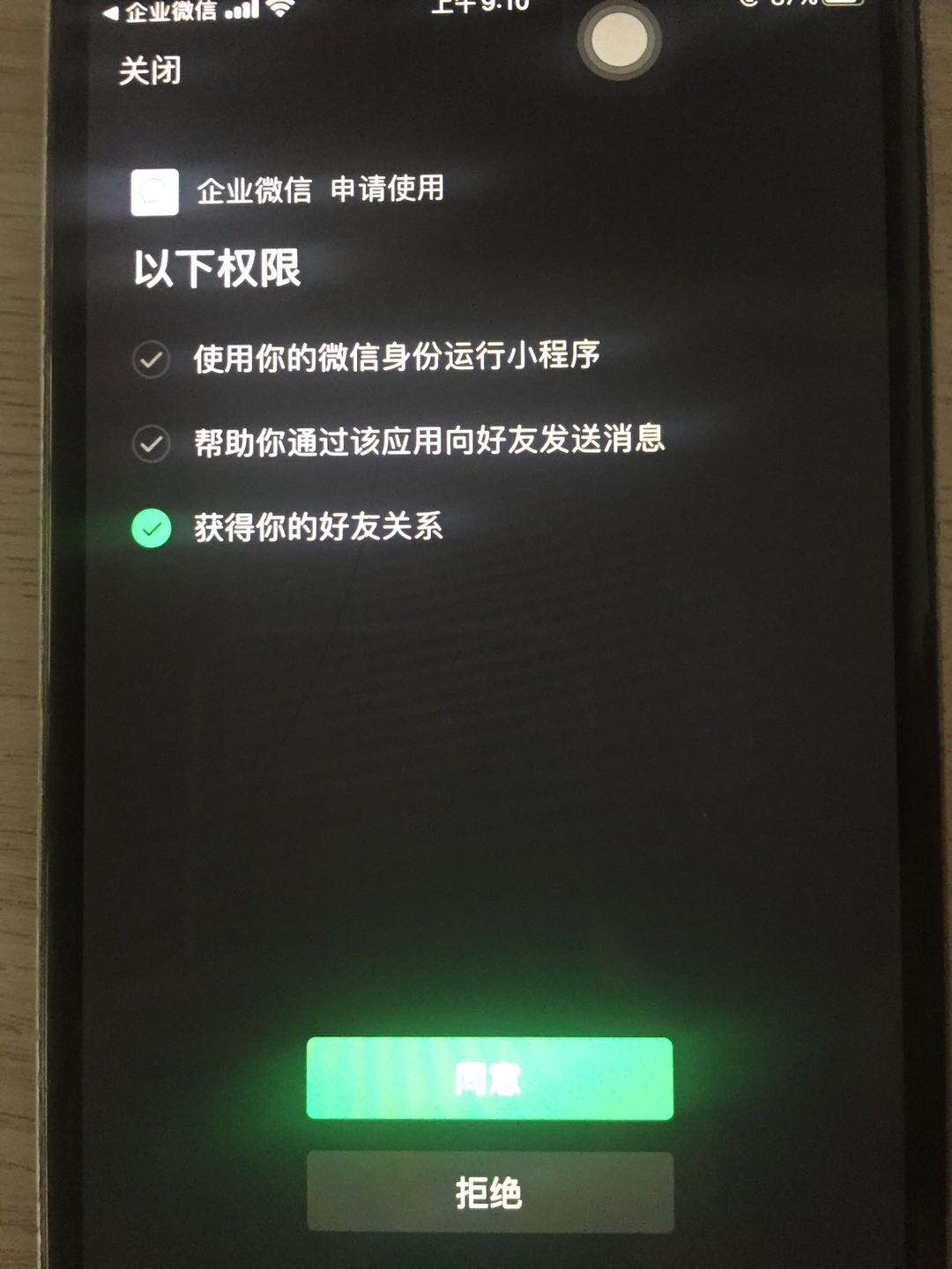 你好,如果是第一次在企业微信使用小程序都需要进行微信授权的