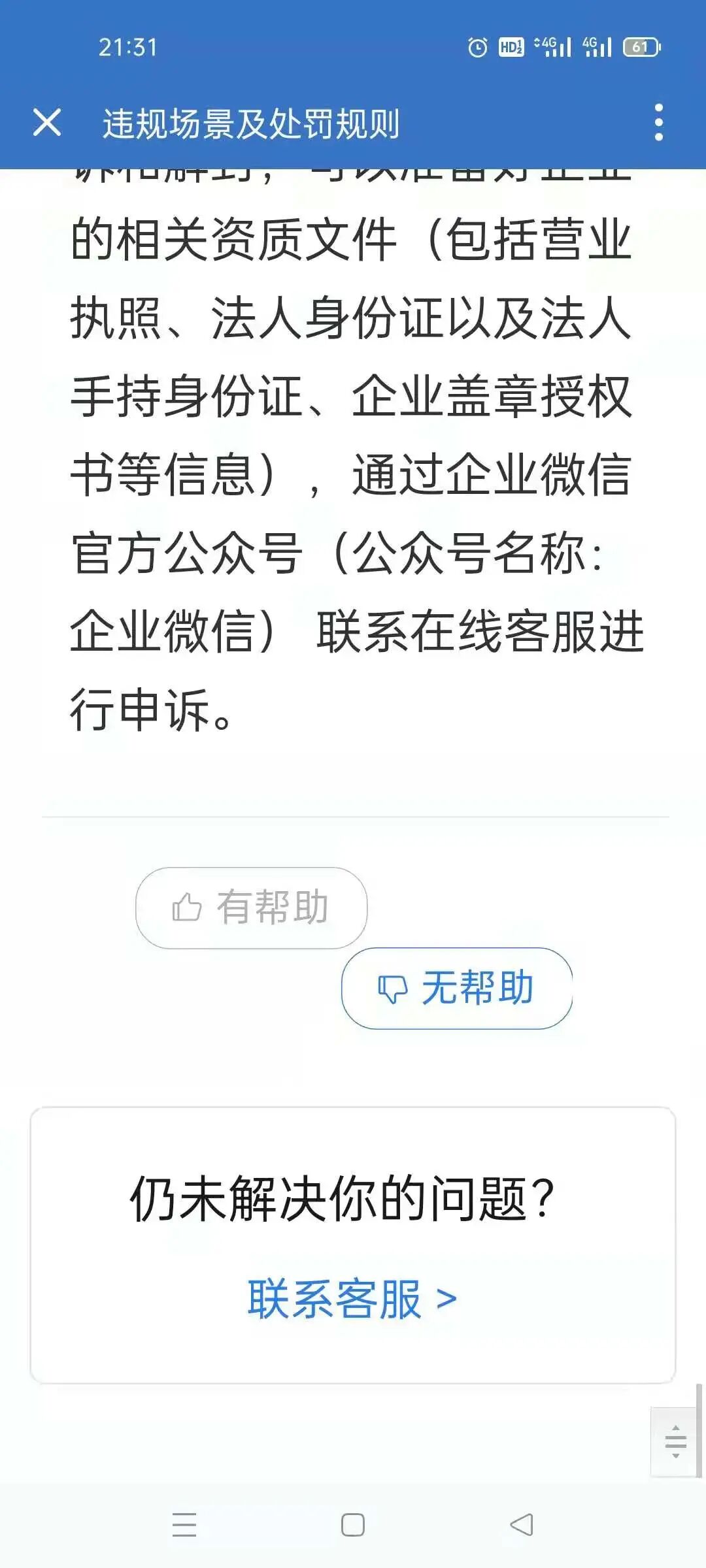 企业微信号被永久封号,在帮助中心根本解决不了,没人工客服吗?