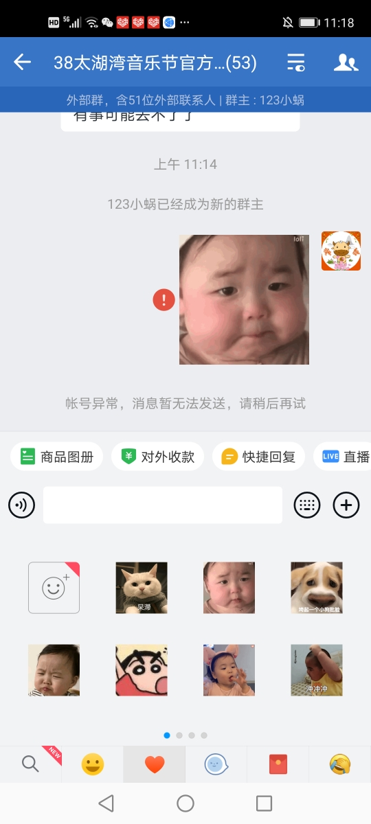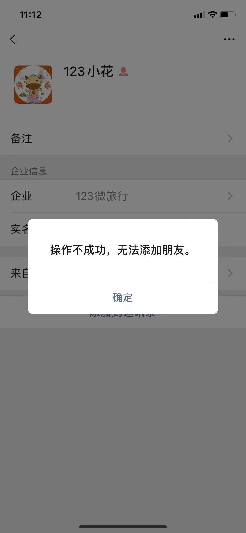 企业微信别人添加,现在是这个样子,且在群里面发言,也发布出去,显示账号异常。