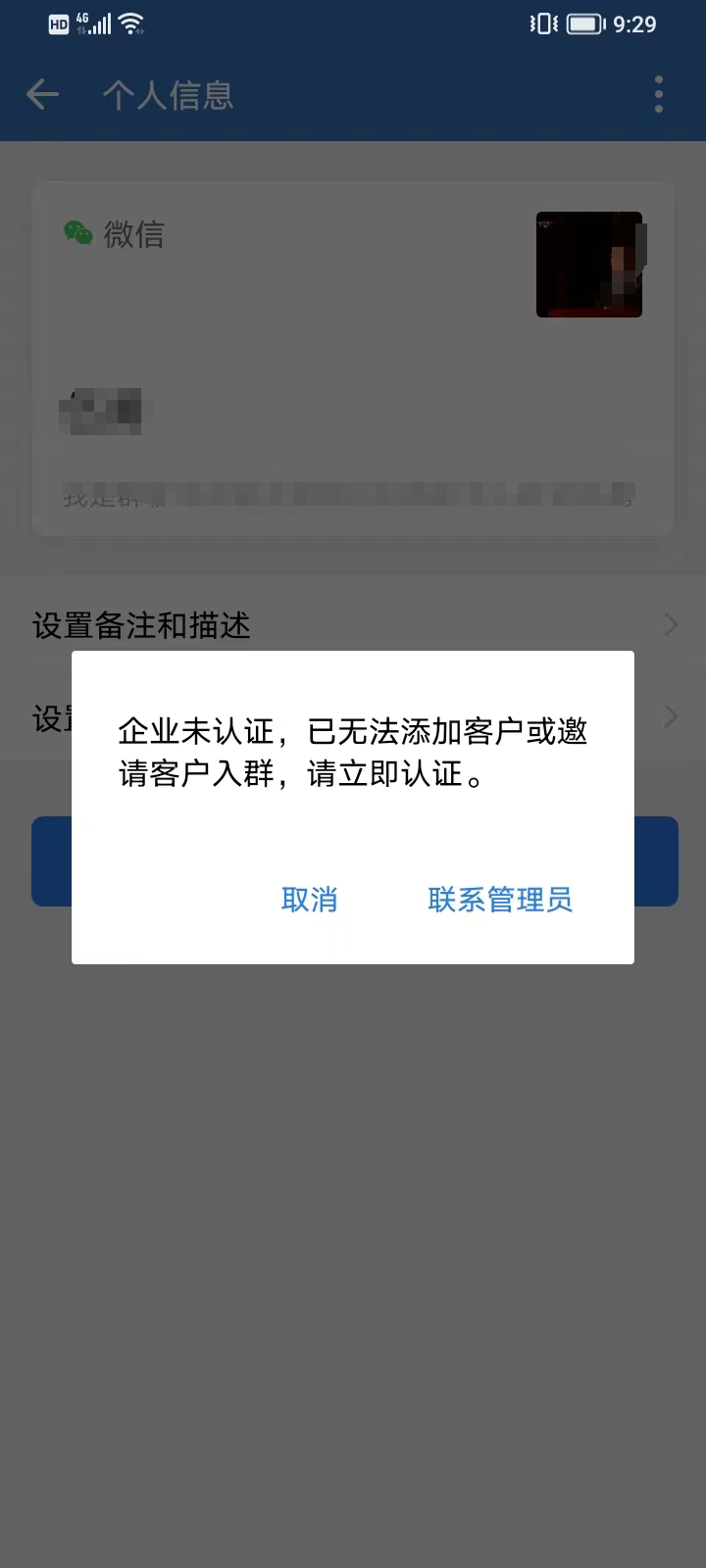 你好,我们上个月就企业认证成功了,怎么现在添加客户添加不了呢?