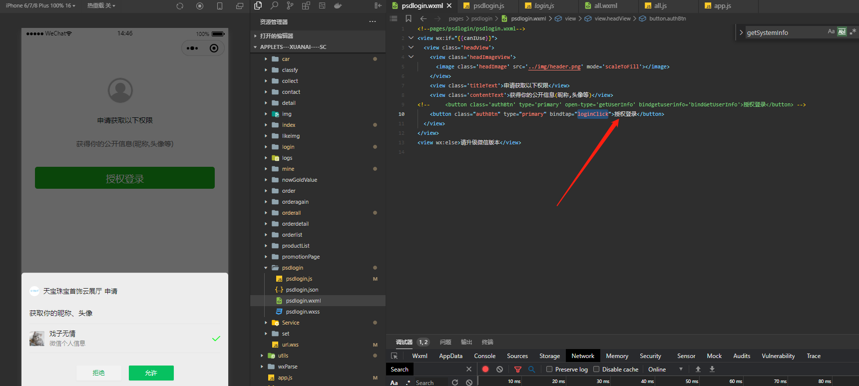 这个是点击授权页面,这个是对应的js事件 loginClick() {