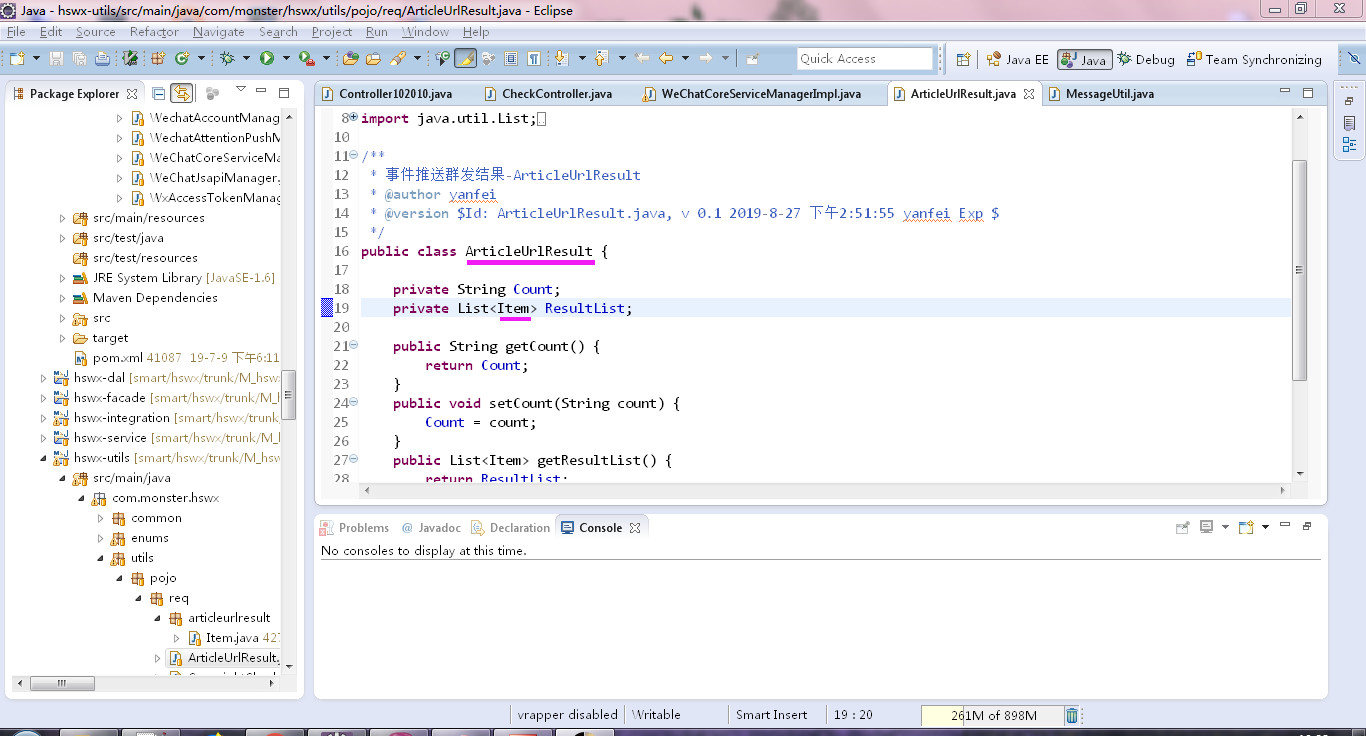at com.monster.hswx.biz.wechat.impl.WeChatCoreServiceManagerImpl.parseWechatMessage(WeChatCoreServiceManagerImpl.java:273)