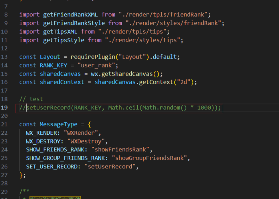 5)使用WX.GetOpenDataContext().PostMessage(msg)向开放数据域发送渲染通知,因为开放数据域已经封装好了基本的渲染功能,所以直接按照先放提供的代码即可