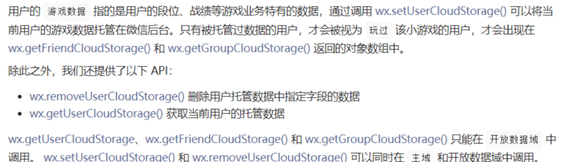 开放数据域:是一个封闭、独立的 JavaScript 作用域。开放数据域是微信端特有的功能,使用它可以让开发者创建一个“子域”,并且只有在这个“子域”中,才能拿到用户相关的数据。