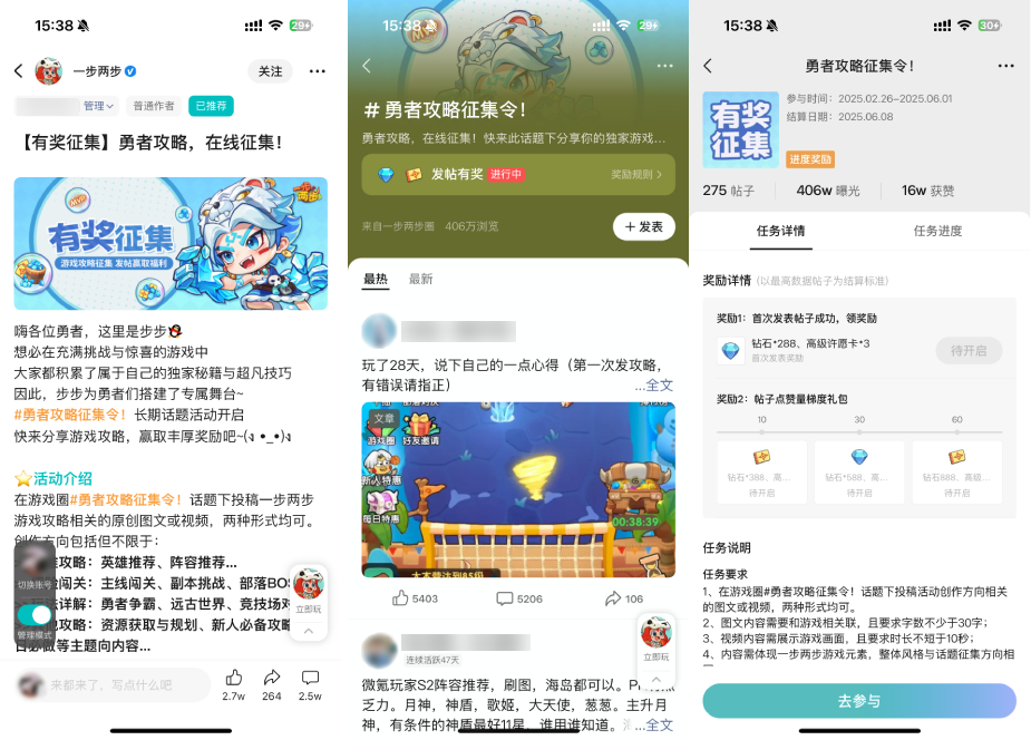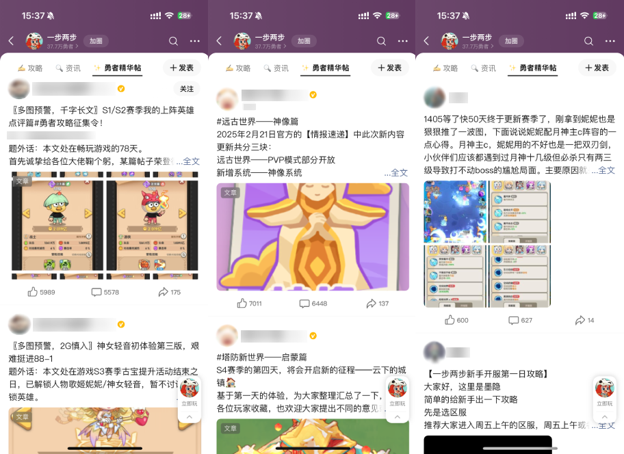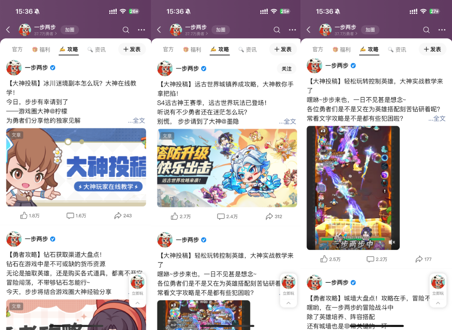 《一步两步》鼓励玩家进行攻略投稿,经官方采用后更有丰厚奖励送上,官方发布的大神投稿帖子点赞回复条均2w+。
