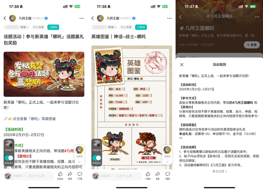 《几何王国》联动春节期间火爆全网的“哪吒”,结合游戏内新英雄“哪吒”创建相关话题讨论,收获了百万+阅读量。