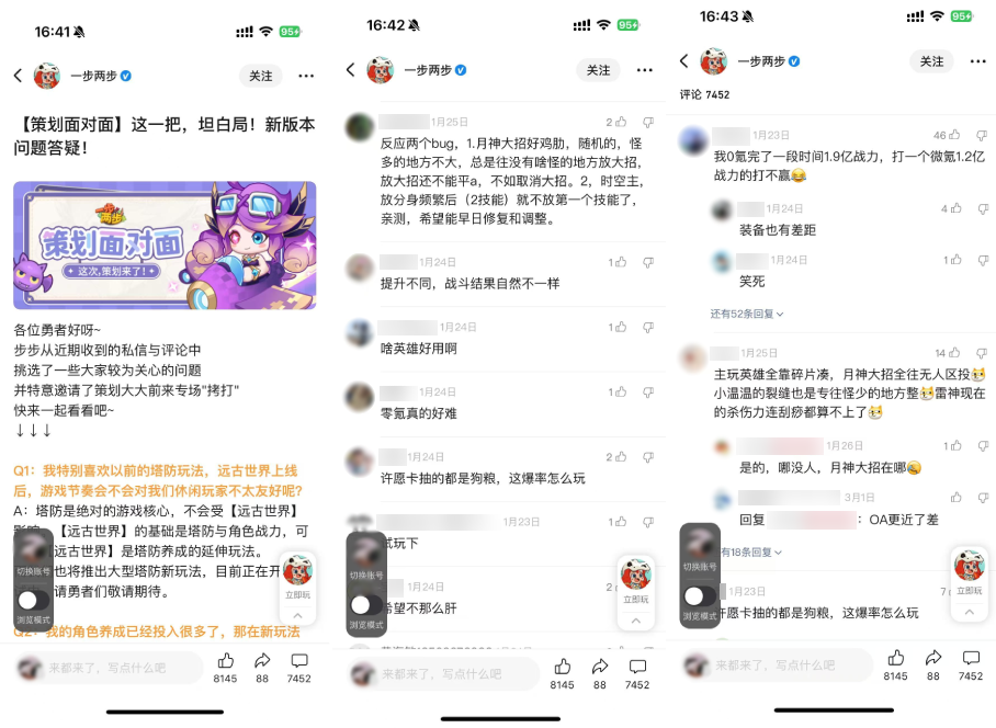 策划下场以QA的方式解答玩家关心的问题,并且鼓励玩家在评论区进行二次反馈,拉近了游戏与用户之间的距离,帖子收获了7k+评论回复。
