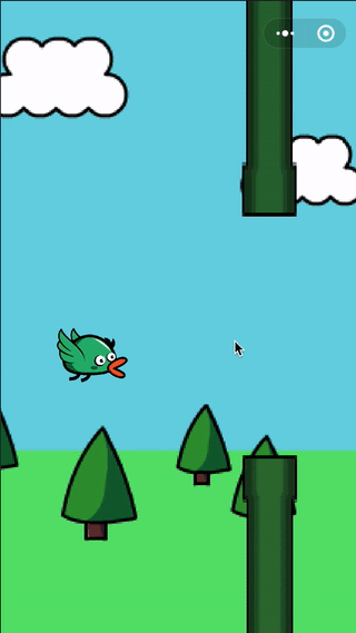 2. 小鸟通过点击屏幕可以向上飞,不点击会自由落体。
