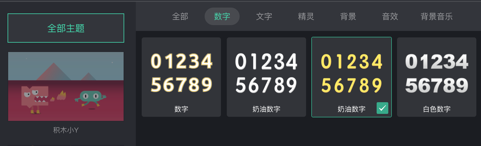 游戏肯定需要分数,我们在素材库里面的数字分类下,可以找到一些可用的数字类型。