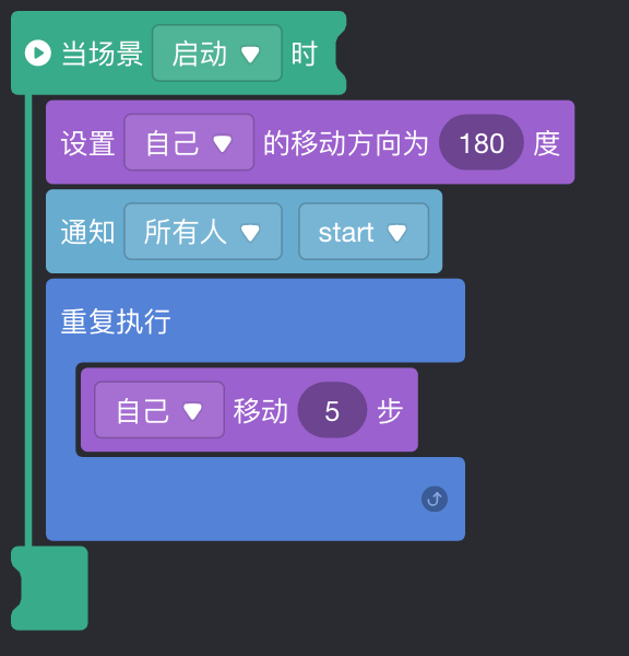 我们先看最后一个事件,当收到一个 start 的通知的时候。就把这两个管子不断向左运动。而且这个速度比背景大一倍,看起来就会有一个视差的效果。
