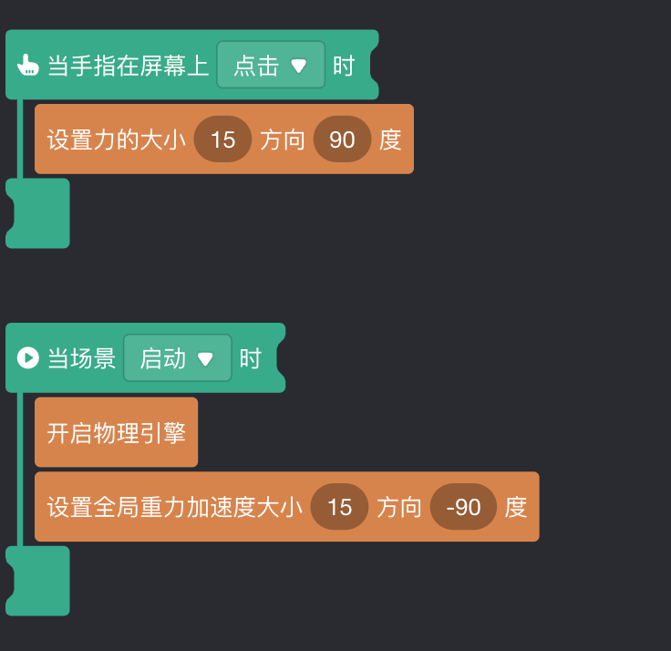 下面这个逻辑的意思是设置一个默认的重力,大家可以随意修改这里的数值,会有不一样的效果。