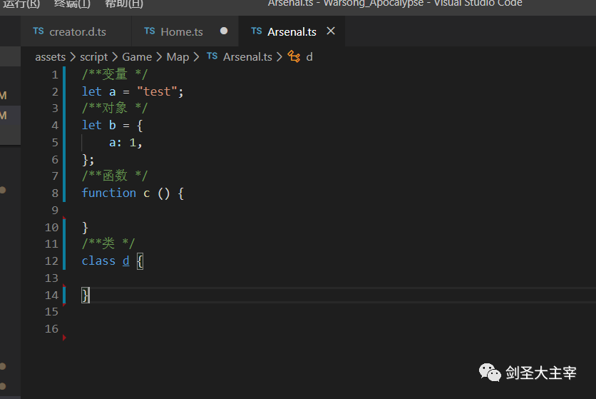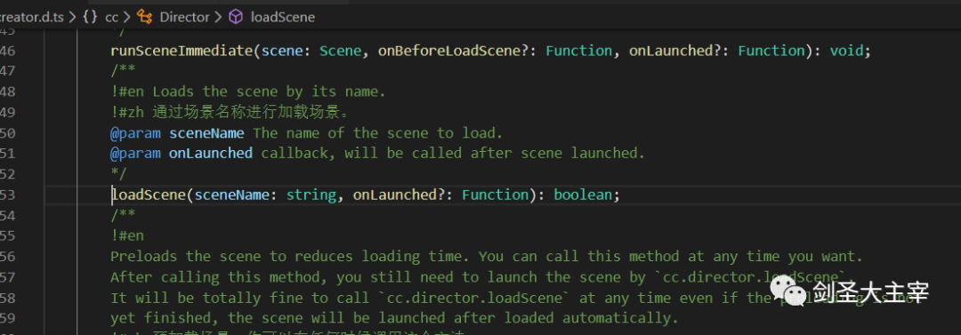 tips:其实cc的api也是用了一个 creator.d.ts来达到表现和逻辑的统一。逻辑是在引擎代码里面实现的,而我们看到的智能提示则是 creator.d.ts 这个文件,ctrl + 左键 也会跳转到这里。