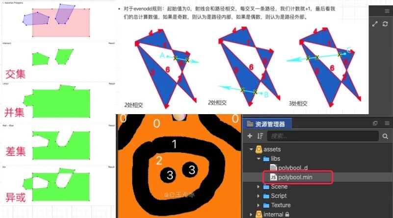 多边形计算用的是 Clipper ,使用接口可以参考官网或者物理挖洞之多边形!。