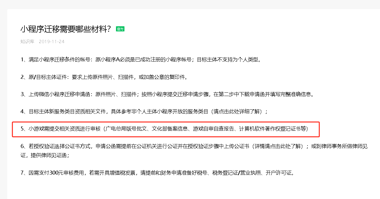 按要求需要软著,建议尽快申请办理。https://developers.weixin.qq.com/community/develop/doc/0008eeaa65cd107f0889cabe251c09?highLine=%25E5%25B0%258F%25E7%25A8%258B%25E5%25BA%258F%25E8%25BF%2581%25E7%25A7%25BB