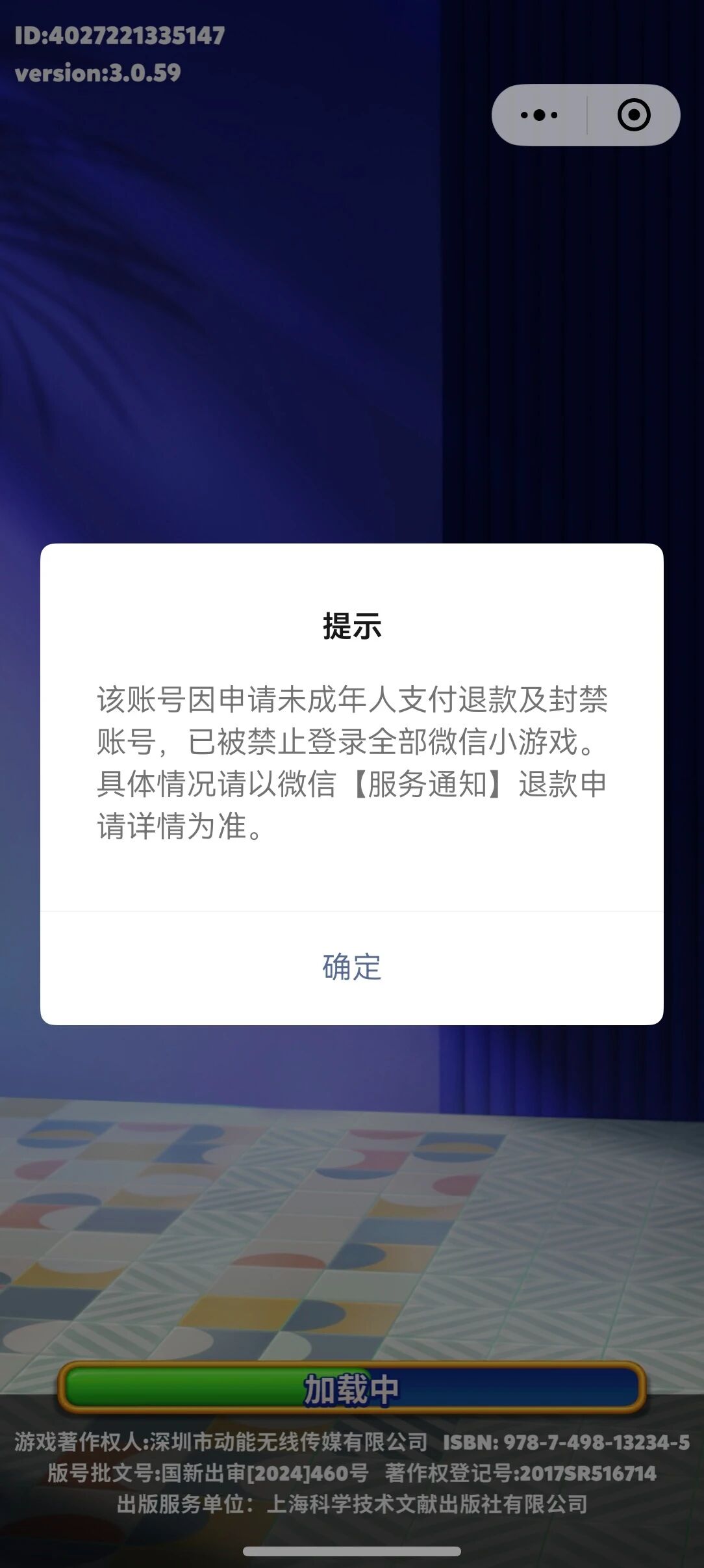 貌似申请了充值退款,已经无法判定你是否未成年人了