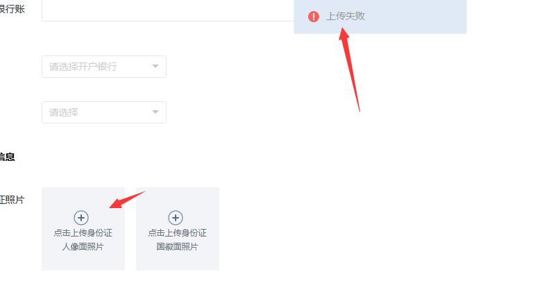 你好,在上传法人身份证正反面图片过程中一直提示上传失败,麻烦帮忙确认下是什么原因,谢谢~