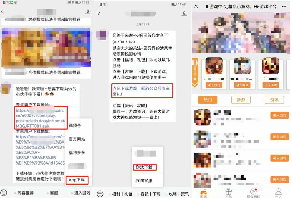 (a)引导用户关注公众号、直播间等账号,在公众号、直播间内提供游戏下载,或运营游戏中心、礼包商城、H5游戏等内容。