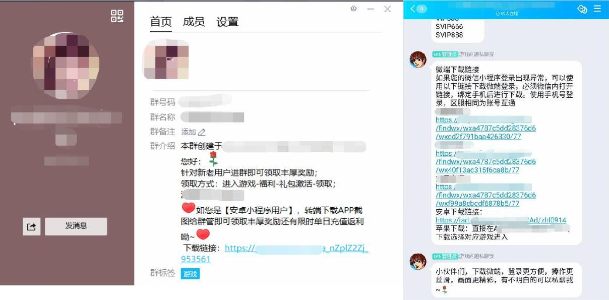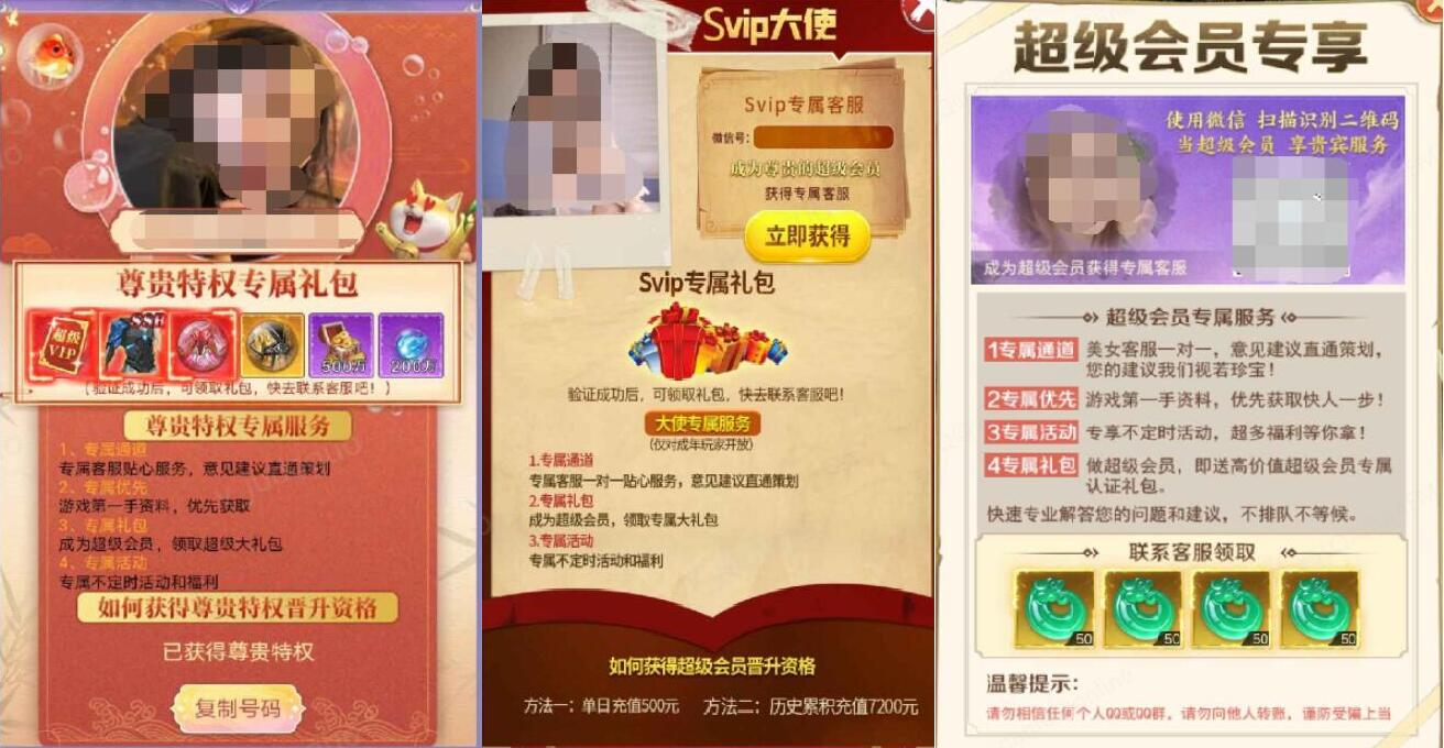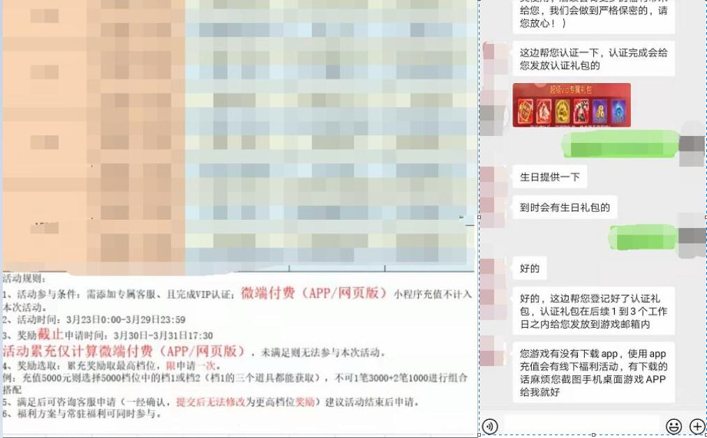 (a)以获得超出小游戏内容的专属礼包/福利之名义或使用含有隐晦、暗示的方式,引导特定用户添加“专属/vip”类客服或群,或在客服渠道/群内引导特定用户认证“vip/专属会员”身份。