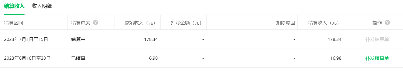每半个月的结算单里面没有包含cps部分的收入,只结算了流量主的收入。