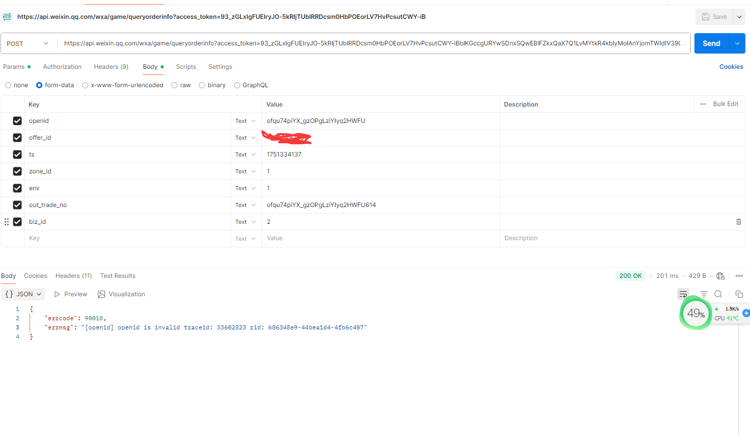 "errmsg": "[openid] openid is invalid traceid: 33566698 rid: 68633db6-2a3350d1-46203241"
