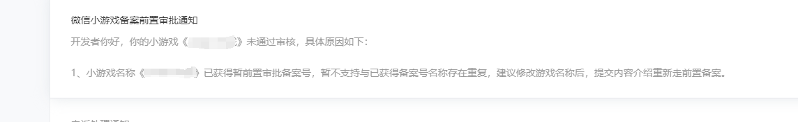 这个是主管部门那边已经记录了一个已经通过内容审核的账号,后来那个账号改名了,再后来名字又被你取到了,你这个名字只有原来那个账号才能继续备案