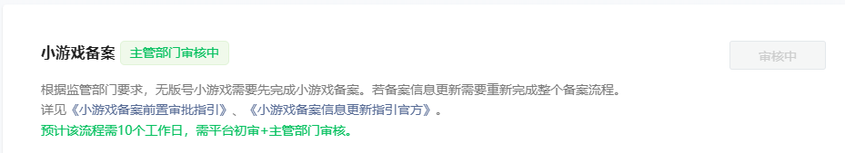 开发者你好~此款游戏已经到主管部门的环节了,主管部门审批完成我们会马上更新状态的。另外,你另外一款游戏建议提前进行备案哦,小游戏备案后还有ICP备案流程哦。