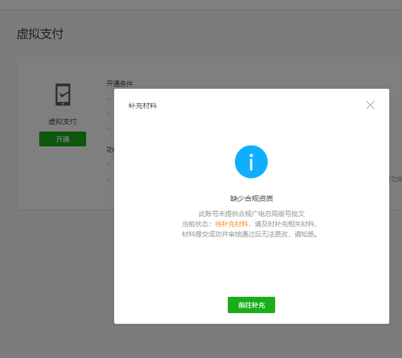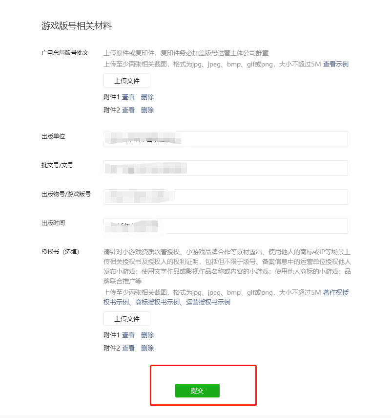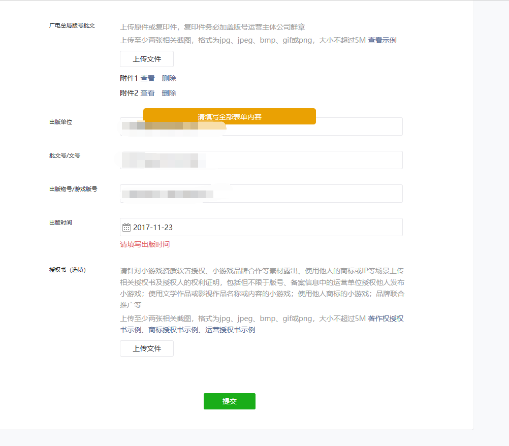 小游戏通过微信认证后,已经关联商户号,要求补充相关版号等资质,运营填写完成后,点击提交无反应也没有任何提示,辛苦帮忙看下~