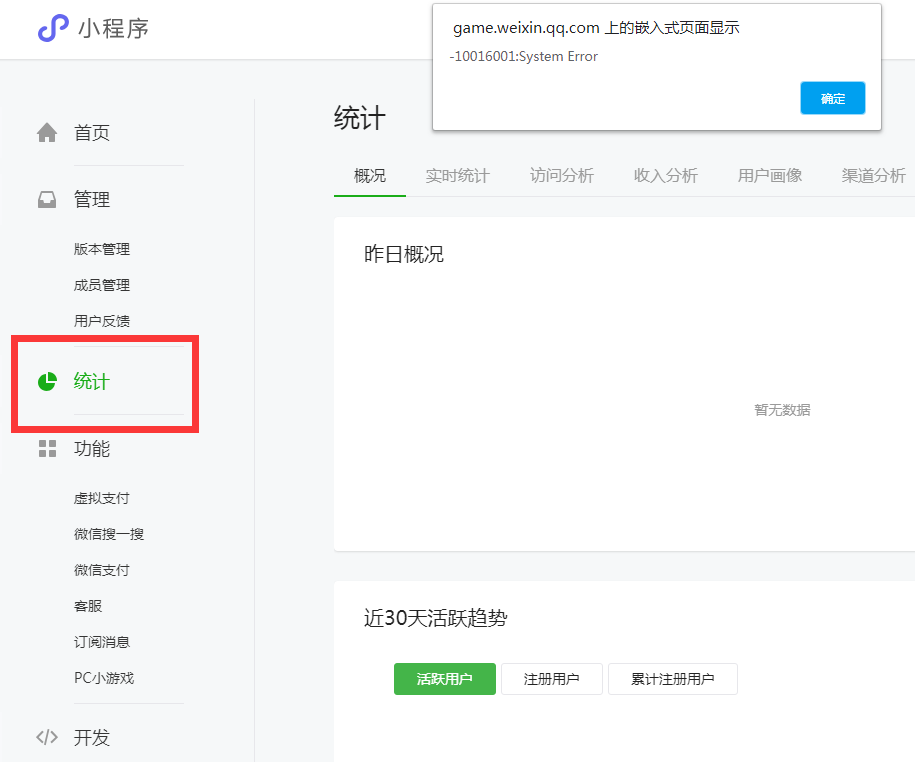 今天所有小程序点击统计都会有报错,麻烦看看原因哈